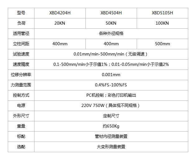 二維碼 產(chǎn)品名稱:微機(jī)控制電子環(huán)剛度試驗(yàn)機(jī)產(chǎn)品型號(hào):XBD4204H/XBD4504H/XBD5105H產(chǎn)品概述:微控型環(huán)剛度試驗(yàn)機(jī)為雙絲杠,主機(jī)、控制、測(cè)量、操作一體化結(jié)構(gòu)。適用于各種塑料管材、復(fù)合管道、玻璃鋼管材的力學(xué)性能檢測(cè):如環(huán)剛度、環(huán)柔性、扁平及蠕變比率等試驗(yàn),以及縫的拉伸、鋼絲拉伸、鋼帶拉伸等試驗(yàn)。滿足波紋管、纏繞管和各種塑料管材測(cè)試標(biāo)準(zhǔn)的要求。軟件系統(tǒng)具有試驗(yàn)參數(shù)設(shè)定存儲(chǔ)、試驗(yàn)數(shù)據(jù)采集、處理分析、顯示打印曲線、測(cè)試報(bào)告打印輸出等功能。該系列試驗(yàn)機(jī)廣泛應(yīng)用于科研機(jī)構(gòu)、大專院校、質(zhì)檢部門、及管...">